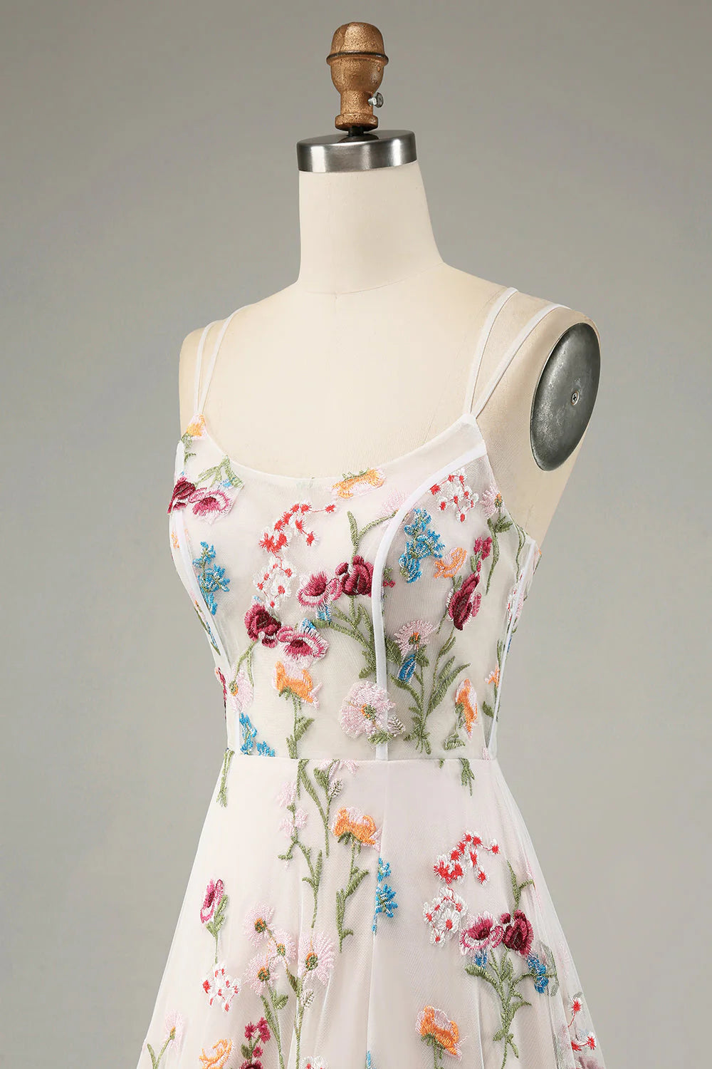 A-Line Spaghetti Straps Corset Long Prom Dress With Slit