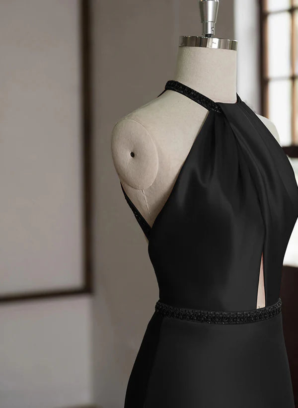 Halter Off The Shoulder Satin Long Evening Prom Dress