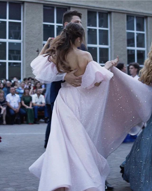 xuewuba's Elevate your glamorous presence with this blush pink glitter off-shoulder maxi dress. It features all-over glitter fabric with dramatic puff sleeves for opulent allure, an off-shoulder neckline with a high slit for refined charm, and an open back with a flowing A-line silhouette for sophisticated flair. The soft blush pink hue ensures a standout finish, making it perfect for formal events, evening galas, or any occasion where you want to blend timeless elegance with sparkling, textural design.