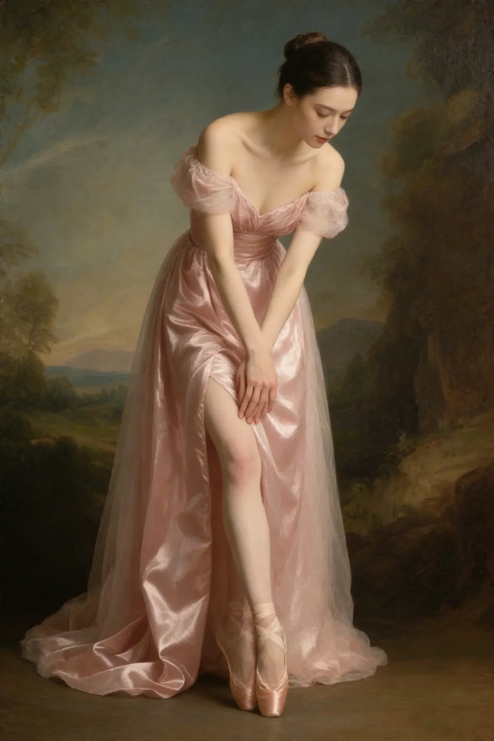 Romantic blush A-line prom dress features a dreamy off-shoulder sweetheart neckline, paired with voluminous puff sleeves that blend vintage charm and modern elegance. The fitted bodice cinches the waist, while a high thigh slit adds a bold, graceful touch, and the sweeping floor-length train flows behind you like a soft cloud. Perfect for prom, ballroom galas, or fairy-tale weddings, this dress transforms every step into a moment of enchantment.