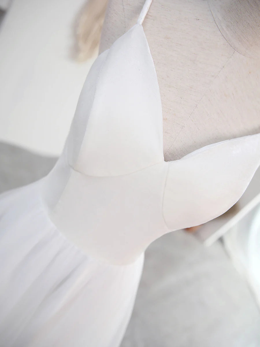 Spaghetti Straps Simple V Neck Tulle Tea Length Prom Dress