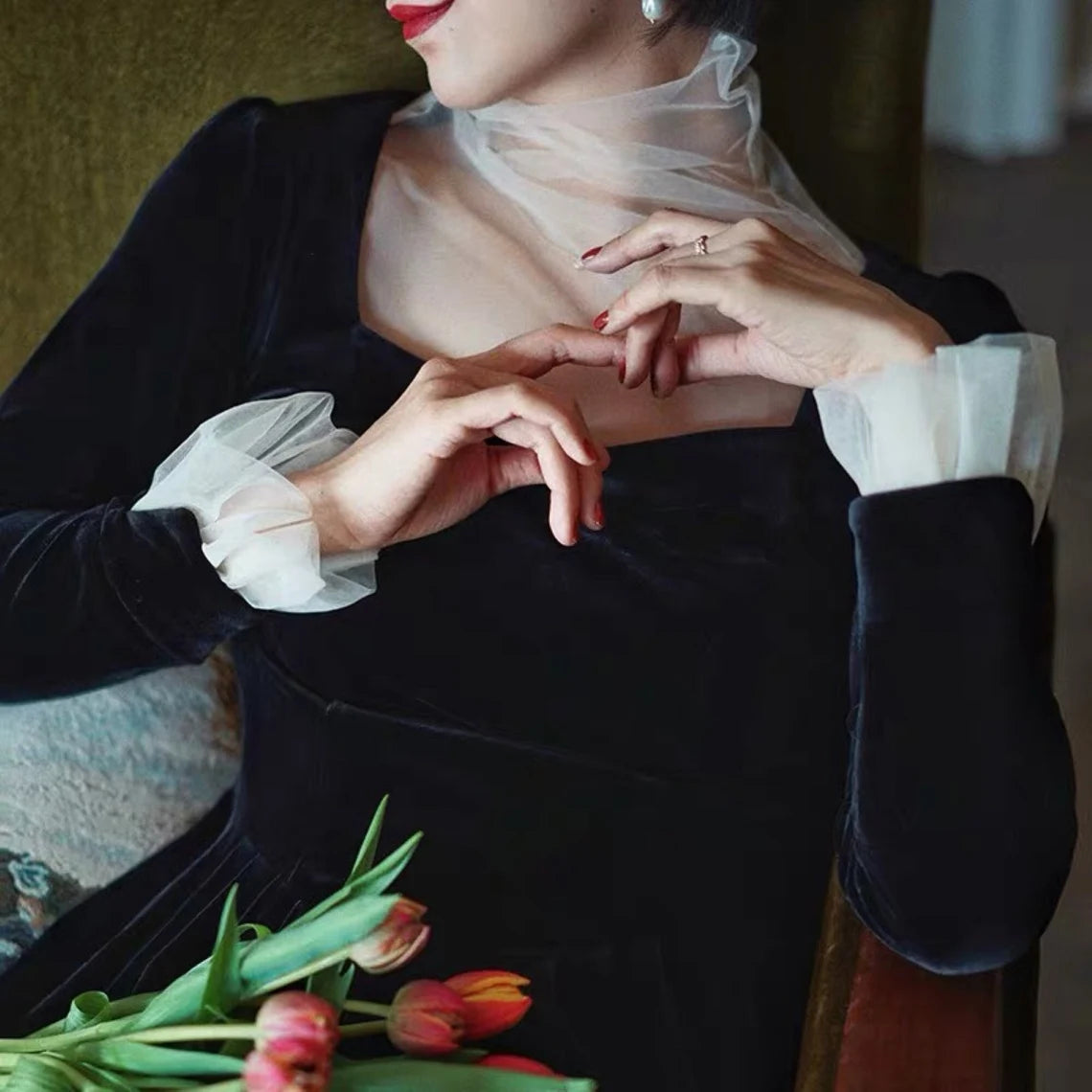 Velvet Maxi Dress Velvet Bridesmaid Dress Velvet Long Sleeve Dress Winter Dress Velvet Vintage Dress Chiffon Sleeve Gift For Her Prom Dress