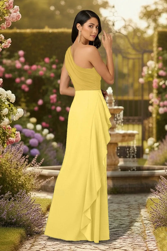 Elegant Sheath One-Shoulder Ruffle Color Block Yellow Floor Length Prom Dress